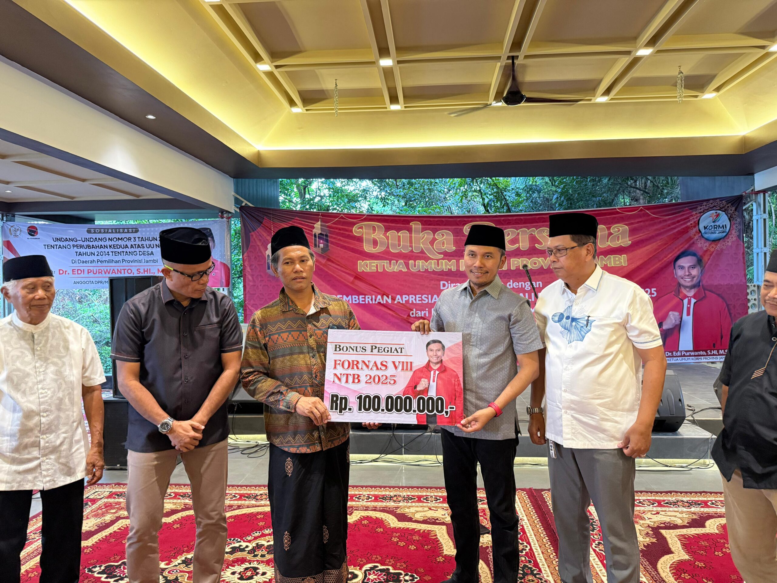 JAMBI – Ketua Komite Olahraga Masyarakat Indonesia (KORMI) Provinsi Jambi, Edi Purwanto, memberikan apresiasi nyata bagi para pegiat olahraga yang sukses mengharumkan nama daerah di kancah nasional. Dalam suasana hangat buka puasa bersama keluarga besar KORMI Jambi (28/2/2026), Edi menyerahkan bonus uang tunai kepada para peraih medali Festival Olahraga Masyarakat Nasional (FORNAS) VIII di Nusa Tenggara Barat (NTB).