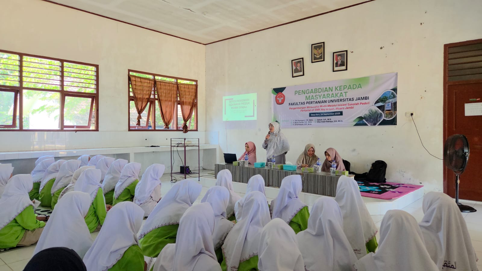 Pada hari Rabu, 24 September 2025, tim yang terdiri dari Siti Kurniasih, Aulia Farida, Gina Fauzia, Zakiah, dan Vika Indah Rahayu melaksanakan kegiatan pengabdian dengan judul “Pengembangan Wirausaha Muda melalui Inisiasi Sekolah Peduli Pertanian” di SMK Asy’Ariyah Muaro Jambi, Pesantren Al-Muttaqin.